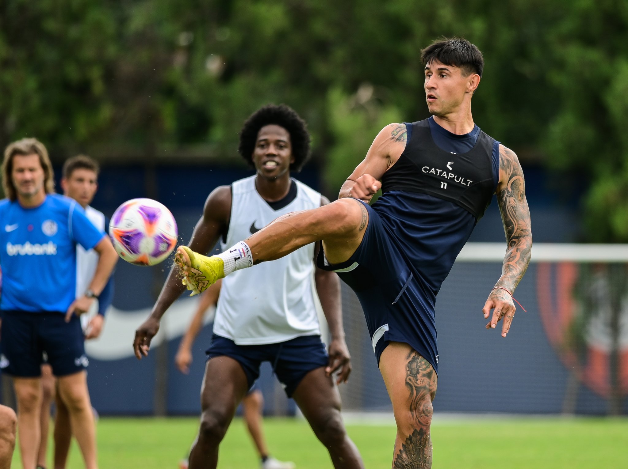 Los nombres probados esta mañana en la Ciudad Deportiva fueron Augusto Batalla; Federico Gattoni, Rafael Pérez y Gastón Hernández; Nahuel Barrios, Jalil Elías, Carlos Sánchez y Malcom Braida; Andrés Vombergar, Adam Bareiro y Ezequiel Cerutti.