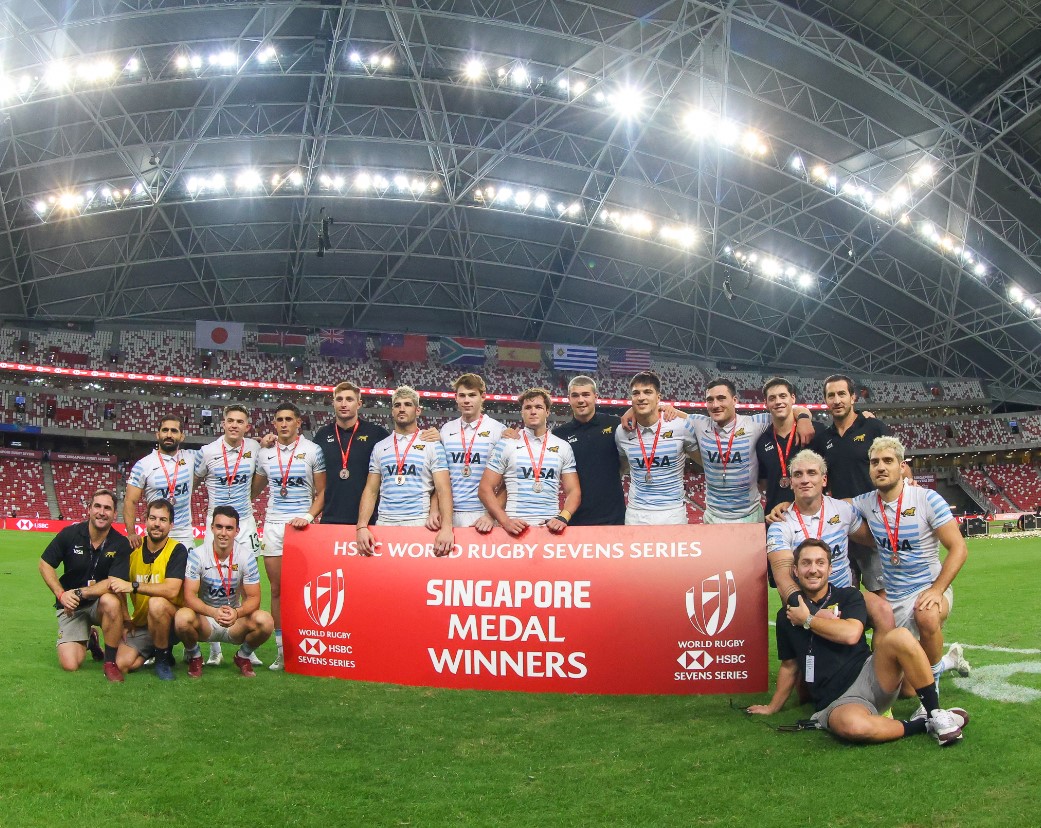El seleccionado argentino de rugby se quedó con la medalla de plata del Seven de Singapur, novena fecha dela temporada, al perder hoy la final del torneo con Nueva Zelanda por 19-17 en el Estadio Nacional del país asiático.
