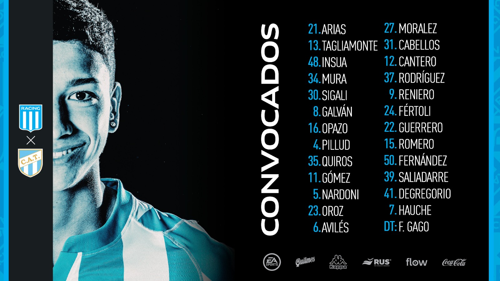 Racing Club: Arias; Pillud, Galván, Insúa, Oscar Opazo; Maximiliano Moralez, Tomás Aviles, Hector Fértoli; Román Fernández, Paolo Guerrero, Nicolás Oroz. DT: Fernando Gago.