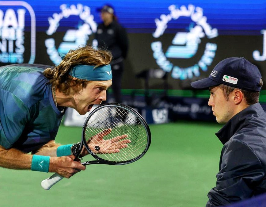El tenista ruso Andrey Rublev, número 5 del ranking mundial, fue descalificado hoy del torneo ATP 500 de Dubái por haberle gritado a uno de los jueces de línea durante su partido de semifinales contra el kazajo Alexander Bublik.